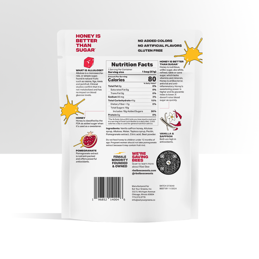 Made with honey, not sugar, and packed with other beneficial foods so you can feel good about EATING THE WHOLE BAG!