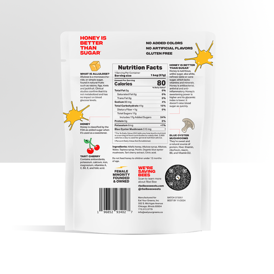 Made with honey, not sugar, and packed with other beneficial foods so you can feel good about EATING THE WHOLE BAG!